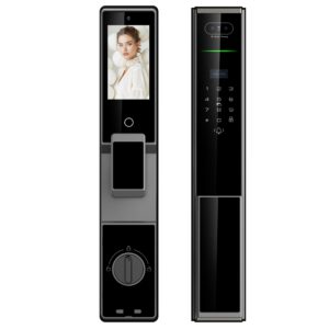 - Khoá vân tay chuyên lắp cho cửa gỗ 6 tính năng sẽ tự động chốt lưỡi gà khi đóng cửa lại.